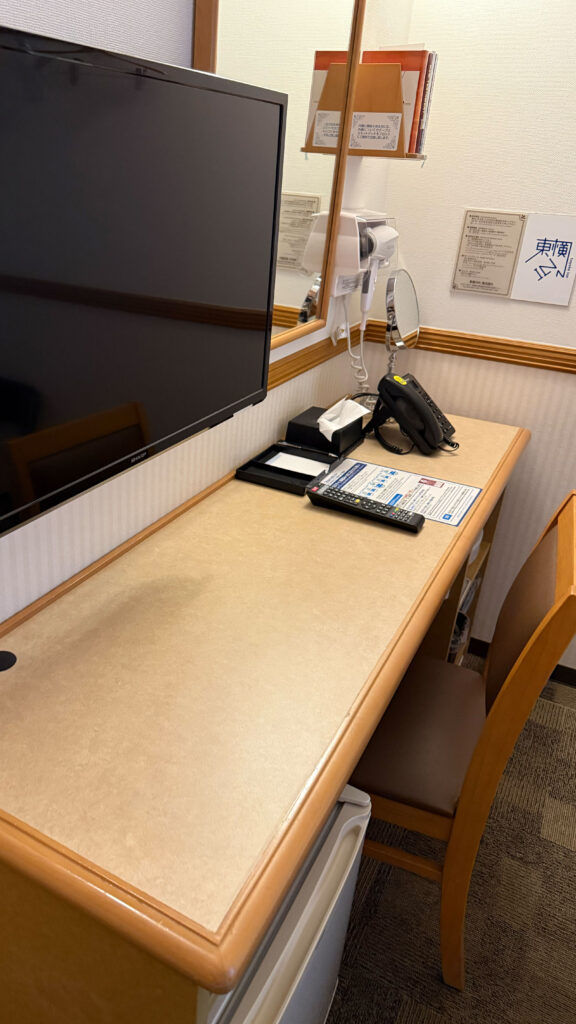 この東横イン標準装備の長机、作業をするのには本当に便利なんですよね。