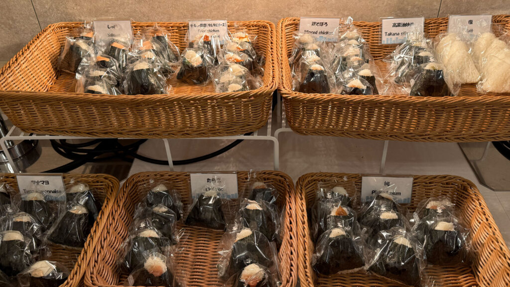 おにぎりの種類は豊富で、梅、高菜、たらこ、鶏そぼろ、チキン南蛮などなど。